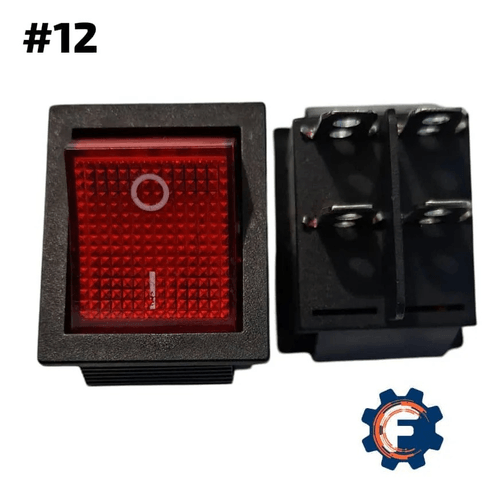 SWITCH UNIVERSAL ON - OFF 4 PINES ANCHO CON LUZ ROJA (#12)