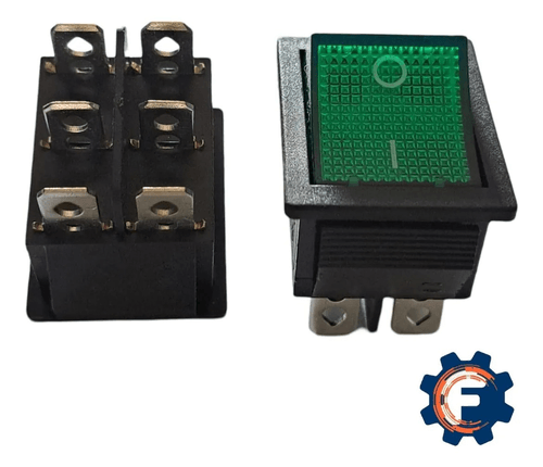 SWITCH UNIVERSAL ON - OFF 6 PINES ANCHO CON LUZ VERDE (#16)