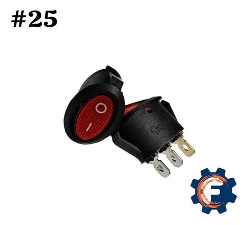 SWITCH UNIVERSAL ON - OFF OVALADO 3 PINES CON LUZ ROJA (#25)